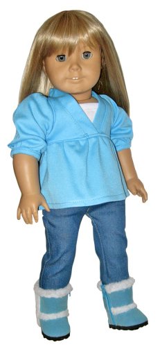 Turquoise boots, Knit Top, and Jeans. Doll Clothes fit 18" American Girl Dolls. Review