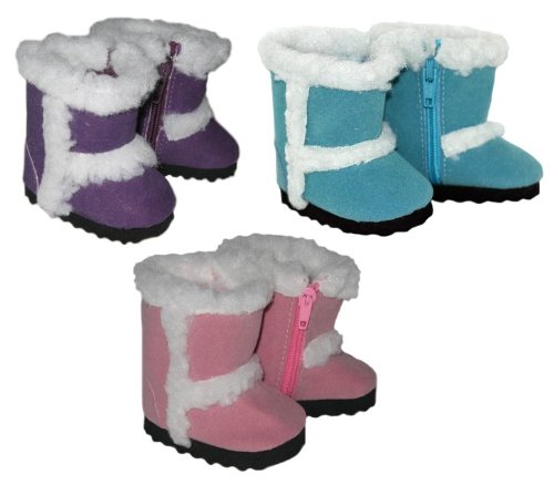 3 Pair of Ugg-Type Boots (Pink, Turquoise., Purple). Doll Clothes Fit 18" American Girl Doll. Review