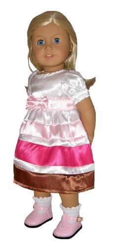Pink/White/Brown Dress, White Socks, and Pink Shoes. Doll Clothes Fit American Girl Dolls. Review
