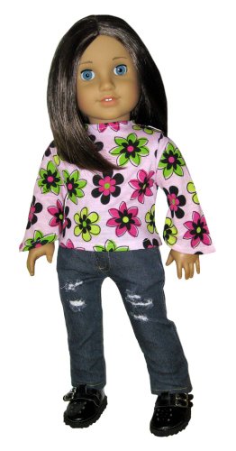 Black Shoes, Holey Jeans, and Flower Top. Doll Clothes fit 18" American Girl Dolls. Review