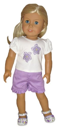 Lavender Floral Shoes, White Top, Lavender Flowers, and Shorts. Doll Clothes Fit 18" American Girl Dolls Review