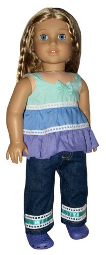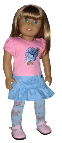 Red Shoes, Black Socks, Red Flower Top, and Denim Skirt. Doll Clothes Fit 18" American Girl Doll. Review