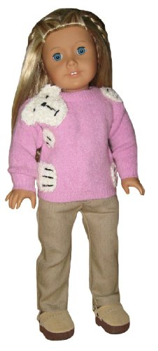 Tan Clogs, Pink Bear Sweater, and Tan Skinny Jeans. Doll Clothes Fit 18" American Girl Doll. Review